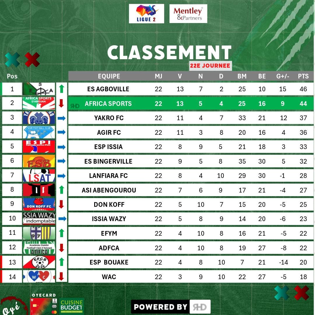 Quoi qu’il se passerait, l’Africa devait se concentrer et remporter son match, face à une équipe qui ne réalise pas une grande saison. A 4 journées de la fin, il faut surtout gagner et tenir la tête du classement, quand la peur de la fin de saison hante les esprits dans la maison vert et rouge. Depuis 4 ans, les Oyés tentent de remonter dans l’élite du football ivoirien où ils ont longtemps regné. Les trois premières tentatives ont toutes échoué dans les derniers instants. Même quand ils ont cru, jouer la Ligue 1 cette saison, après avoir bénéficié d’une décision de la commission de recours, le rêve ne s’est jamais réalisé. Les voilà encore en train de croiser les doigts pour la fin de cette situation infernale, inconfortable pour un géant, un ex-cador de la scène Africaine. Après un jeu de chaise musicale, le choc de Yamoussoukro s’est finalement déroulé à huis-clos à la dernière minute. Et ce que les Membres Associés Mobilisés craignaient, arriva dans la soirée du samedi 19 avril. Alors que l’ES Agboville parvenait à venir à bout des Béliers (2-0), en fin de partie, l’Africa Sports se faisait surprendre au Stade Robert Champroux de Marcory par Lanfiara Sport d’Attecoubé (2-3). Une défaite qui a fait perdre la tête du classement aux Aiglons et qui confirme leur fragilité dans le sprint final. L’Africa Sports est désormais deuxième avec 44 points +9, soit 2 points de retard sur l’équipe d’Agboville (46 points), plus que déterminée à goûter aux délices de l’élite.