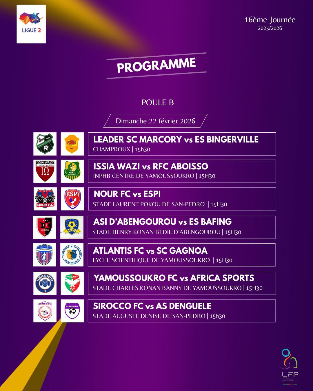 A 15H30, la Ligue 2 va vibrer sur l’étendue du territoire national. Les leaders de la poule A ont l’avantage du classement puisqu’ils vont affronter des équipes relativement à leur portée. OFC Adiaké, 1er ex-æquo avec 28 points (+8) accueille à domicile, EFYM, avant-dernier qui compte la moitié de ses points (14). Un écart comptable qui situe la différence entre les adversaires. Favoris, ils ont tout de même la pression face aux écoliers qui se battent pour le maintien avec une présence dans la zone rouge en raison du différentiel de but négatif (-7) par rapport à AS Tanda, 13e, qui enregistre le même nombre de point avec (-5). Le club du Gontougo, qui traverse la zone de turbulence affronte lui aussi un adversaire du même calibre, Williamsville AC. En effet, c’est au parc des sports de Treichville toujours à 15H30 que le club de (WAC), 1er ex-æquo, va tenter de faire mieux qu’Adiaké. Pour être à nouveau leader, dans ce duel à distance, la victoire peut ne pas être suffisante, il faudra rattraper cet écart de 2 buts.