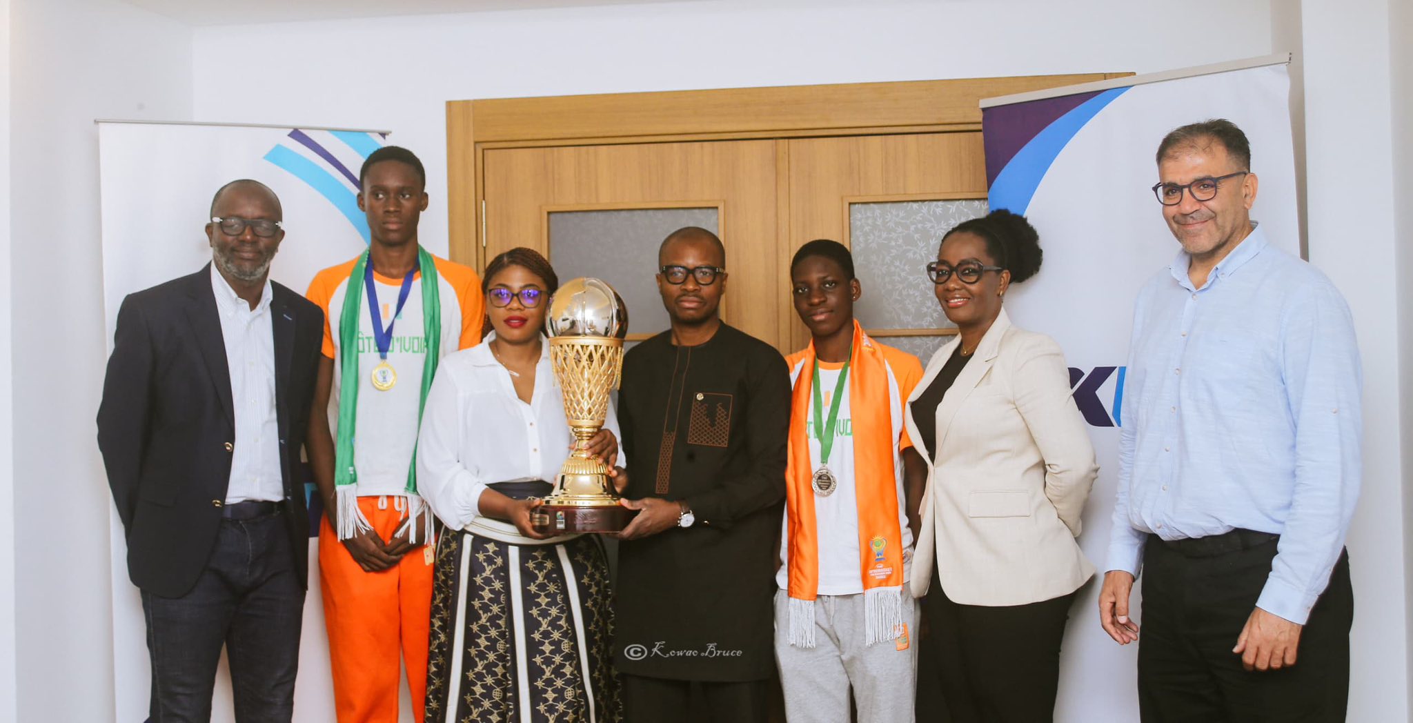Le trophée de champion d’Afrique U16 a été présenté ce jeudi 2 octobre dans les locaux de 1XBET CI, partenaire officiel de la Fédération Ivoirienne de Basketball (FIBB). Cette visite de prestige a permis au personnel de l’entreprise, conduit par sa Directrice Générale Mme Sabine Kouakou, de partager un moment fort avec les représentants de la fédération et deux jeunes champions, Martial N’Goran et Auriane Degny. Dans une ambiance conviviale, Mme Kouakou a salué la performance historique des sélections ivoiriennes U16 lors du dernier AfroBasket, où les garçons ont décroché la médaille d’or et les filles l’argent. « Les jeunes nous ont fait honneur. Nous sommes fiers d’eux. Qu’ils persévèrent toujours dans l’effort pour rester au sommet et être des exemples dans leur communauté. Félicitations également à la FIBB et à son comité directeur pour leur engagement dans la promotion du basketball ivoirien, tant au niveau national qu’international », a-t-elle déclaré.