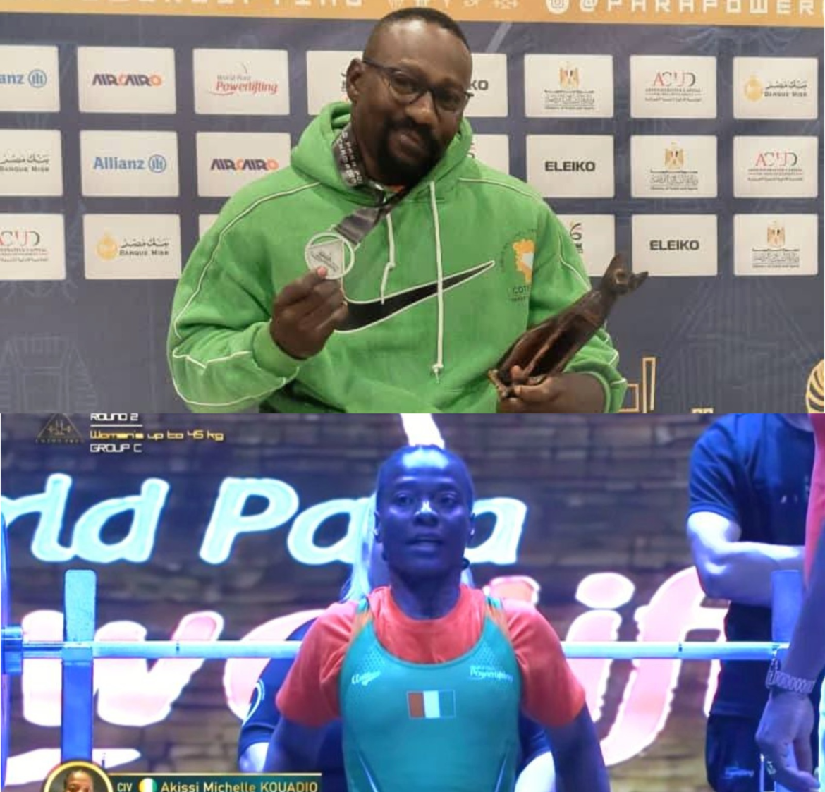 Trois nouvelles médailles pour la Côte d’Ivoire ! Les para-haltérophiles ivoiriens Kouadio Akissi Michèle et Diamoutené Alidou se sont illustrés avec éclat au Championnat du monde de para-haltérophilie 2025, disputé au Caire, confirmant la montée en puissance du para-sport ivoirien sur la scène internationale.