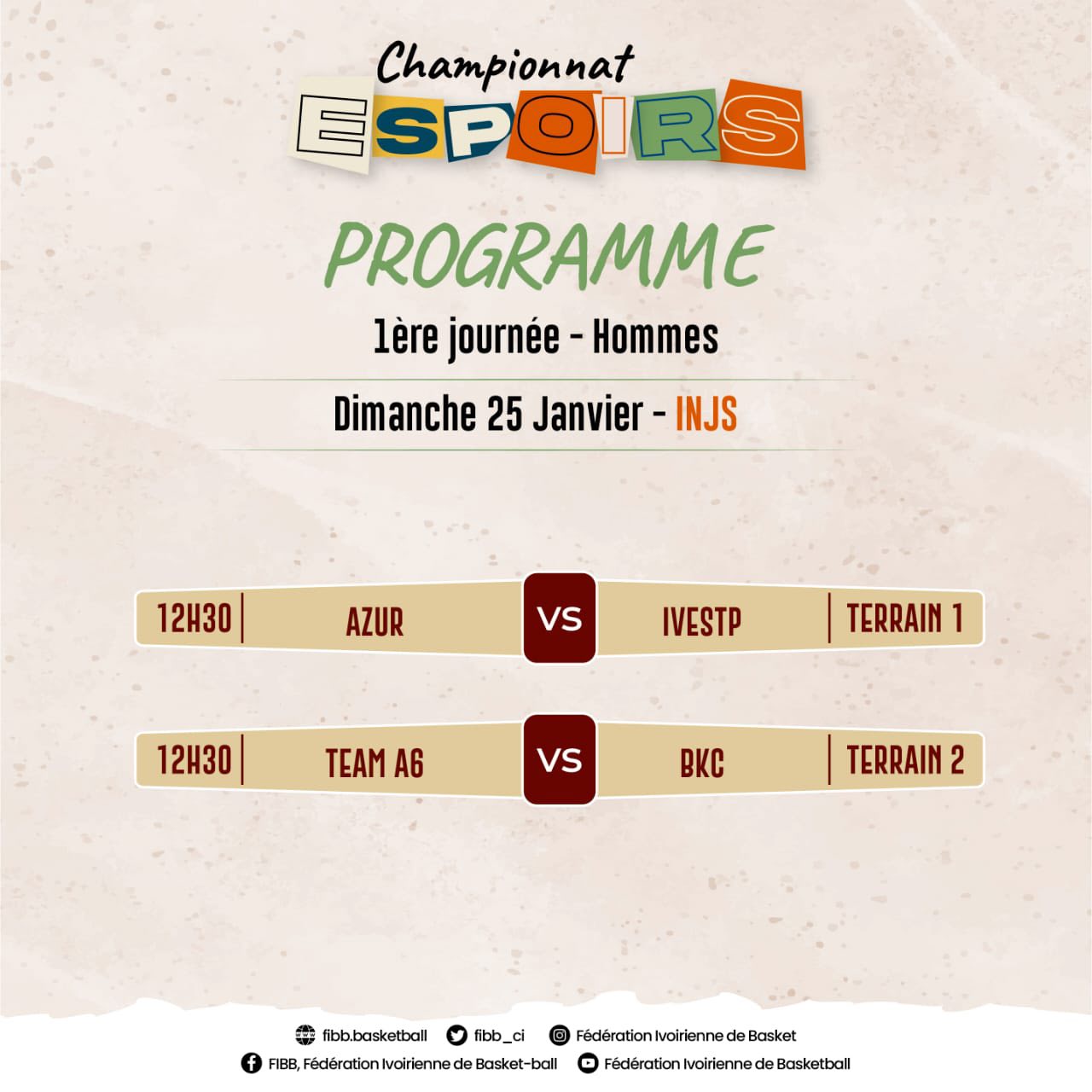 La rentrée sportive en catégorie Espoirs se poursuit avec la suite du programme de la première journée. Rendez-vous ce dimanche 25 janvier à l’INJS de Marcory pour une nouvelle série de rencontres.