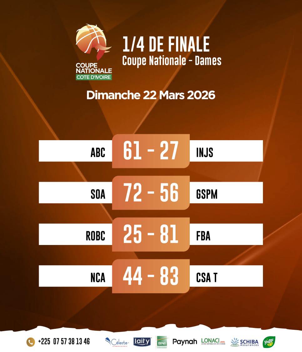 Les huitièmes de finale de la 53e édition de la Coupe nationale de Côte d’Ivoire ont tenu toutes leurs promesses chez les hommes. Au terme d’une journée riche en points et en intensité, plusieurs formations ont validé leurs billets pour les quarts avec autorité, à l’image de l’ASA et de la JCA, particulièrement impressionnantes.