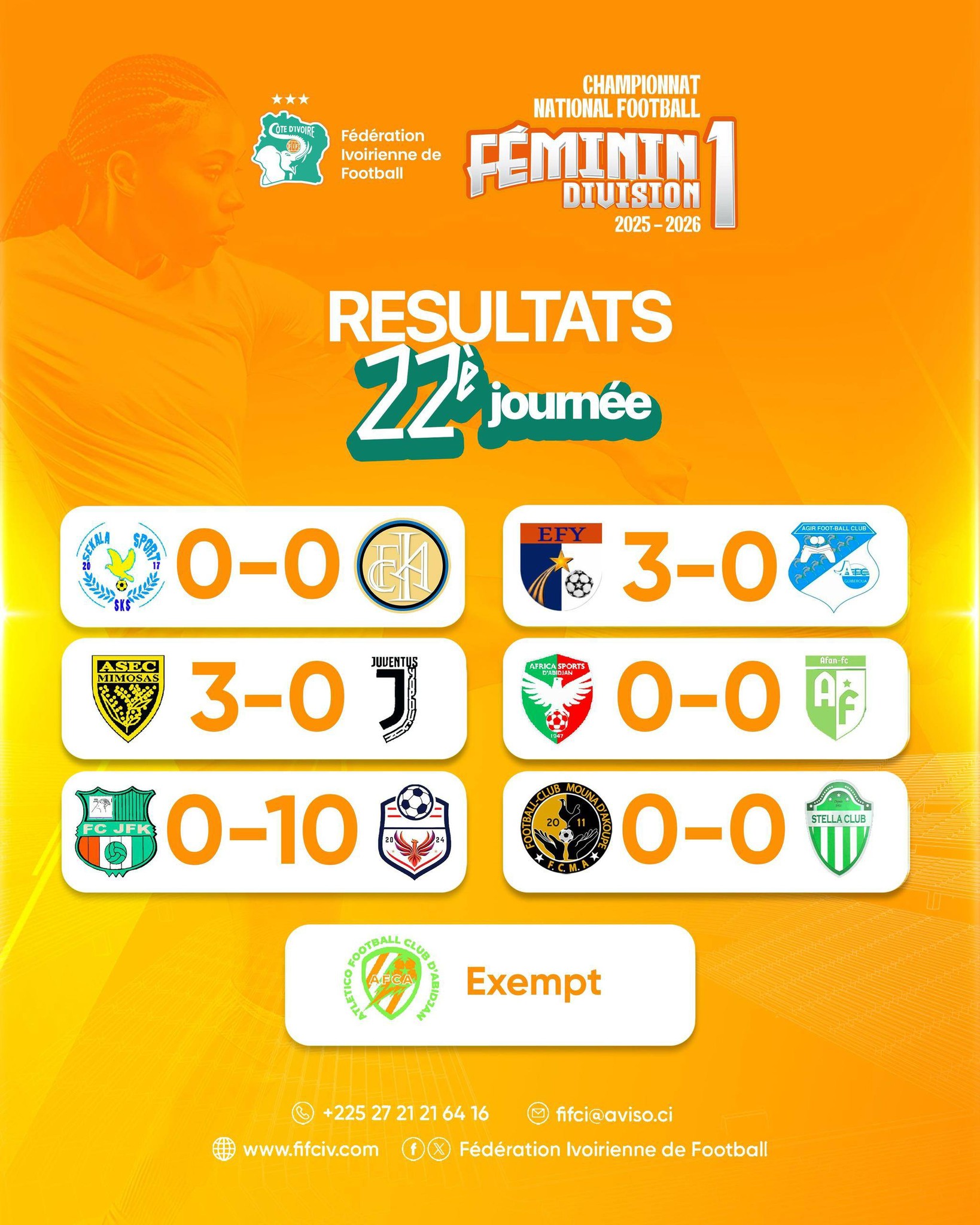 En bas de tableau, la bataille pour le maintien s’annonce particulièrement acharnée entre le FC Inter, l’Africa Sports et l’Afan. Pour le FCJF Koria, lanterne rouge, l’objectif sera désormais de sauver l’honneur lors des dernières journées.