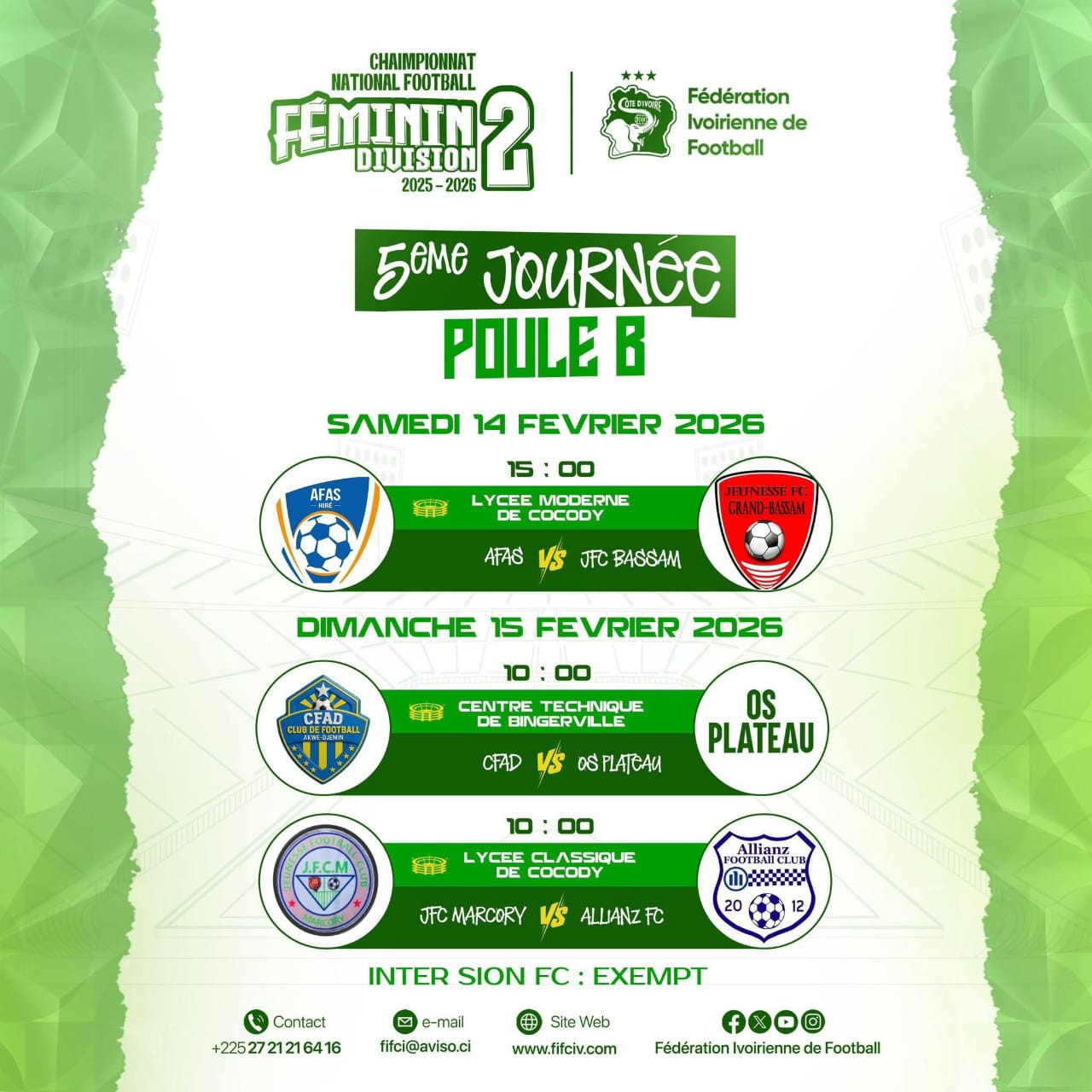 A 13H, les yeux et le cœur seront en République Démocratique du Congo pour le match retour du 3e tour des éliminatoires de la coupe du monde U20. En effet, les ivoiriennes vont tenter de se qualifier pour le 4e et dernier tour après une victoire (2-0) à domicile. Une sélection concernée encore plus par ce championnat vu que la 2e division est uniquement disputée par des joueuses ivoiriennes de cette catégorie d’âge (U20). Après l’objectif international, place à l’enjeu domestique qui débutera ce jour à 15H30 entre AFAS et JFC Grand-Bassam au lycée moderne de Cocody.