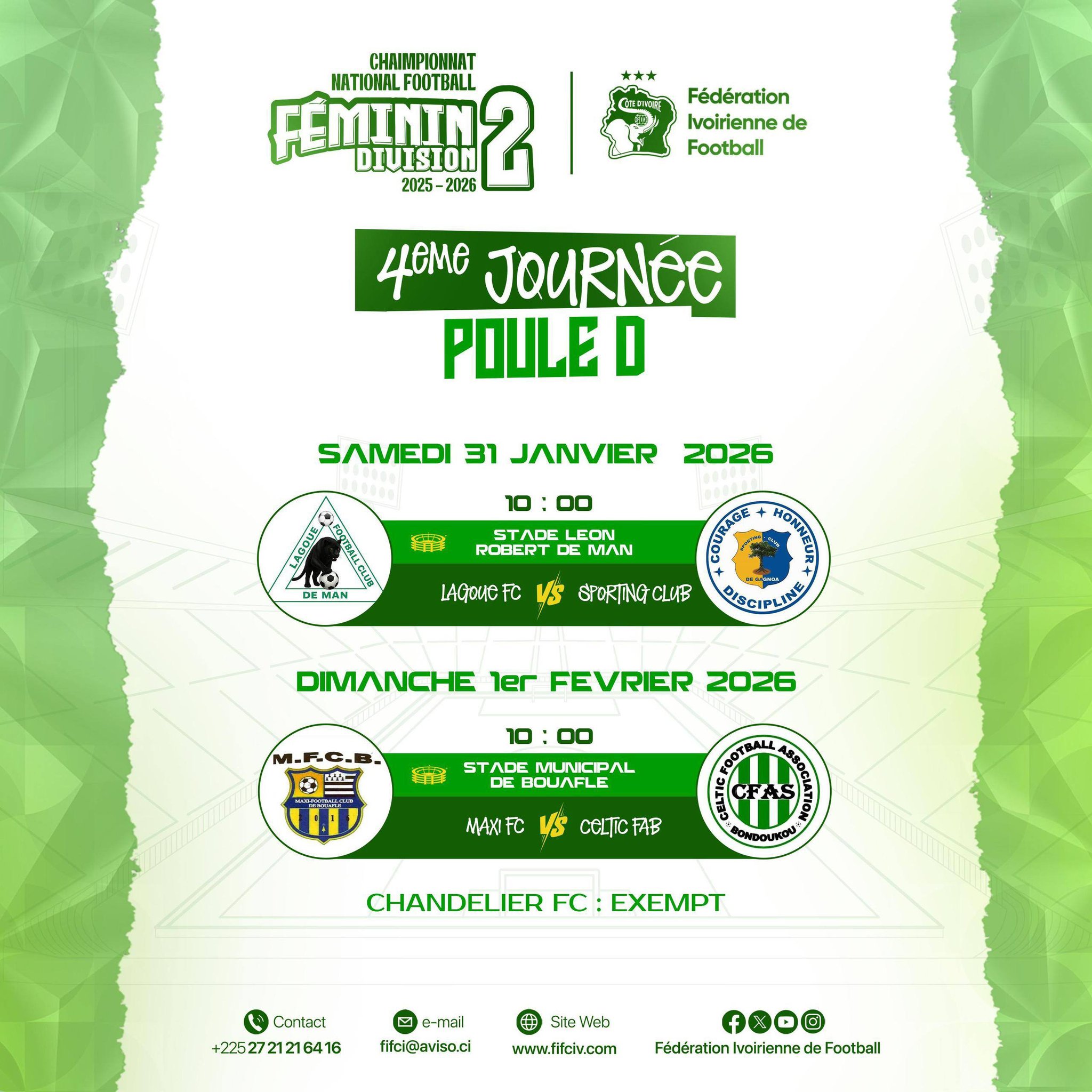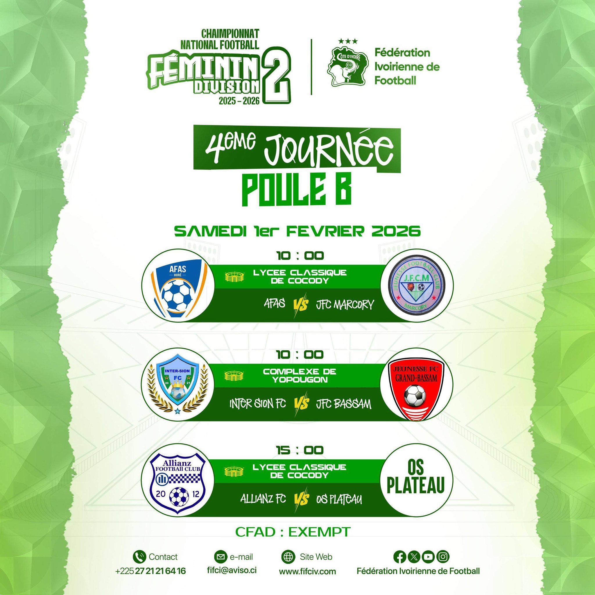 La 4ème journée du Championnat National de Division 2 Féminine se déroulera ce week-end avec plusieurs duels qui s’annoncent décisifs pour la suite de la saison.