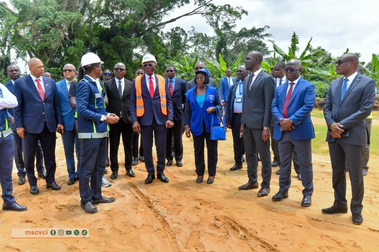 Ce lundi 6 octobre 2025, le Ministre délégué en charge des Sports et du Cadre de Vie, Adjé Silas METCH, s’est rendu sur le chantier afin de constater l’état d’avancement du projet. Accompagné de son Directeur de Cabinet, Pr Alfred Yao N’Guessan, et de Ousmane Gbane, Directeur général de l’Office National des Sports (ONS), il a fait le tour du site et salué la progression des travaux.