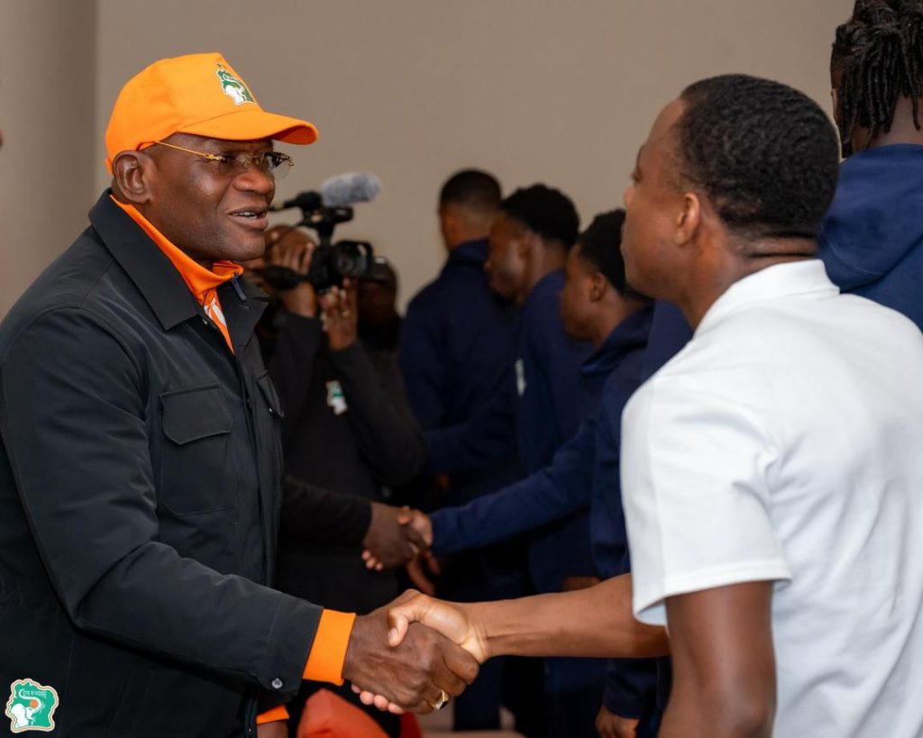 Il était accompagné de sa délégation, aux côtés du président de la Fédération Ivoirienne de Football (FIF), Idriss Diallo, ainsi que des vice-présidents, Malick Toé et le Colonel Koné Mamadou. Cette rencontre symbolique avait pour objectif de présenter les vœux de Nouvel An, au nom du Président de la République, du Premier ministre, et en son nom propre, mais aussi de féliciter chaleureusement les Éléphants pour leur brillante qualification en huitièmes de finale. Prenant la parole, le ministre Silas Metch a tenu un discours fort : « Nous sommes désormais en huitièmes de finale. C’est la phase d’un coup Ko. Chaque match à venir : huitième, quart, demi-finale doit être joué comme une finale. Et la grande finale devra être celle de tous les Ivoiriens ! »