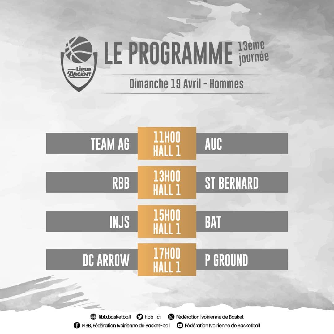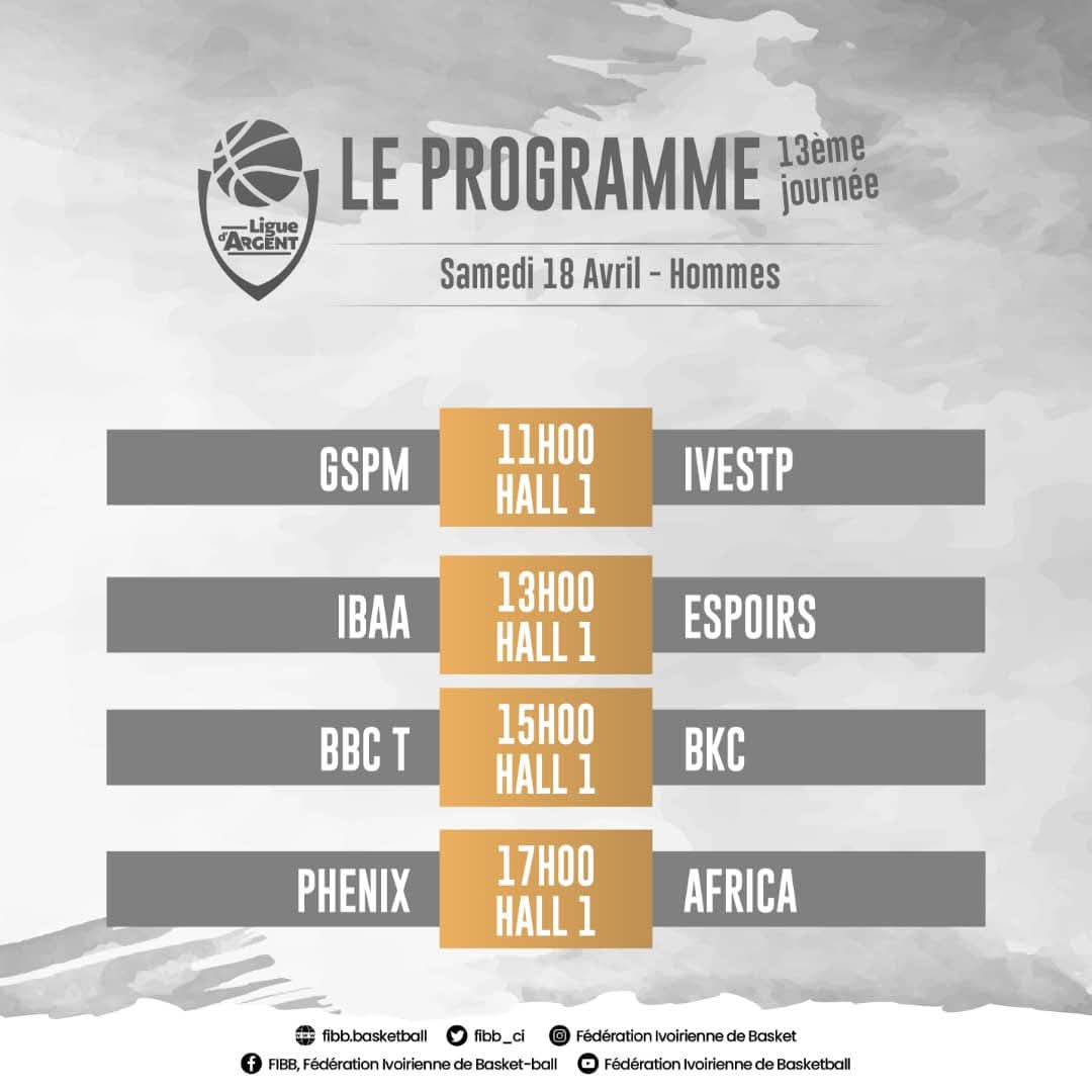 La 13e journée de la Ligue d’Argent N2 Hommes se dispute les 18 et 19 avril au Palais des Sports de Treichville. Deux jours de compétition au Hall 1, où les équipes tenteront de se positionner dans la dernière ligne droite du championnat.