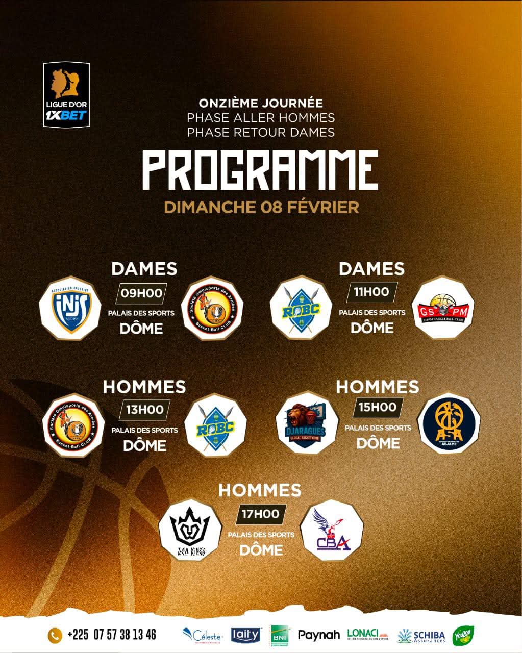Après une 10e journée riche, la Ligue d’Or N1 1XBET enchaîne ce week-end des 07 et 08 février 2026 avec sa onzième étape. Entre la fin de la phase aller chez les Hommes et le début des joutes retour pour les Dames, le Palais des Sports de Treichville s’apprête à vibrer au rythme de dix affiches électriques où chaque panier comptera pour la suite de la saison.