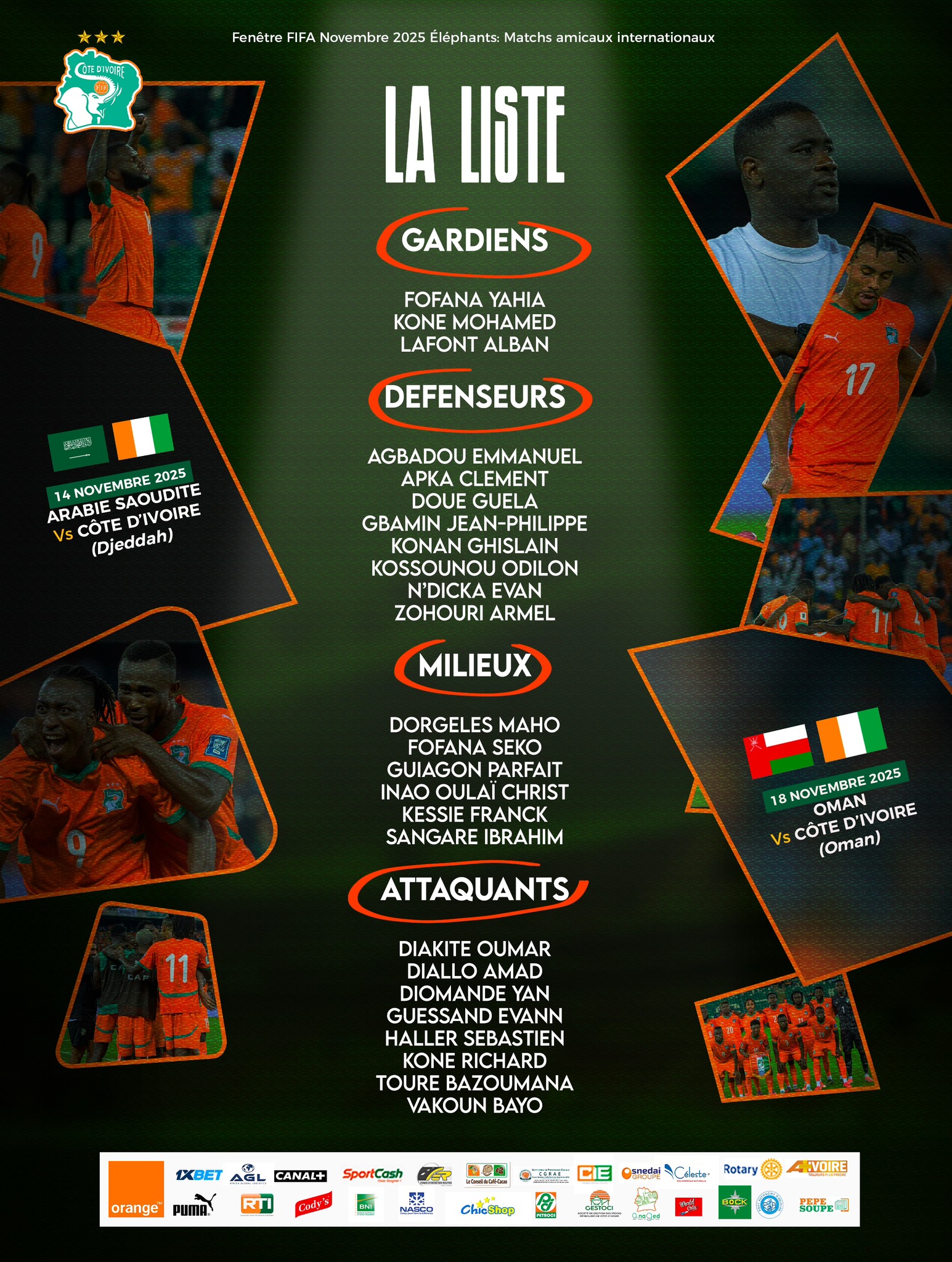 Pour certains joueurs, comme Inao Oulaï et Richard Koné qui fêtent leurs premières convocations, le choix a été mûrement réfléchi. « Inao est suivi depuis longtemps. Physiquement, il a franchi un cap et performe à un bon niveau. Richard est un attaquant compétitif, qui marque régulièrement des buts et qui est en pleine forme », a précisé le sélectionneur. Concernant les joueurs non retenus, notamment Simon Adingra, Faé a tenu à rassurer : « Je n’ai jamais dit que Simon serait absent de la CAN. Il n’est pas sur la liste actuelle parce qu’il a eu une petite douleur derrière la cuisse. Mais je n’ai aucune inquiétude : dans les grands rendez-vous, il est toujours présent. »