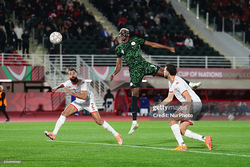 Victor James Osimhen of Nigeria scores and celebrates his teams first goal during the AFCON Group C match between Tunisia and Nigeria at Fes stadium, Fes, Morocco on December 27, 2025. (Photo by Ulrik Pedersen/NurPhoto via Getty Images)