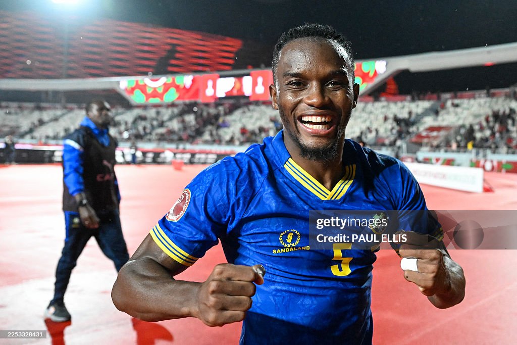 TOPSHOT – Tanzania’s defender #05 Dickson Job celebrates their qualification after the Africa Cup of Nations (CAN) Group C football match between Tanzania and Tunisia at Rabat Olympic Stadium in Rabat on December 30, 2025. (Photo by Paul ELLIS / AFP via Getty Images)