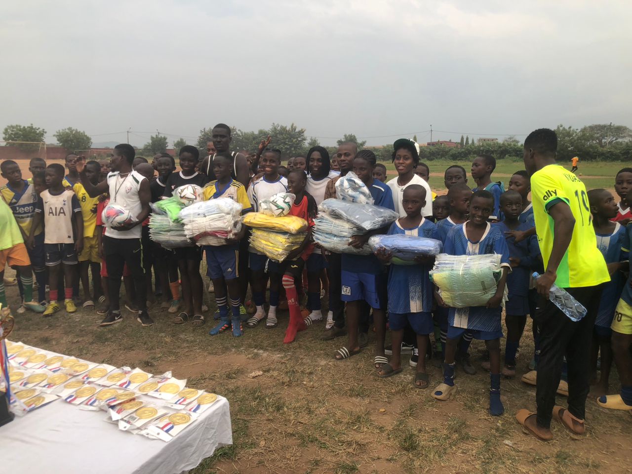 C’est l’académie espoir qui a régné sur cette journée marathon qui a duré toute la journée. Elle a remporté les 2 trophées mis en jeu. Chez les U12 garçons, à l’issue d’un tournoi entre 6 académies, Académie Espoir a pris le meilleur sur CFET aux tirs au but (5-4). Chez les dames, le match de gala s’est achevé par un score de (1-0) contre CFFAT. Au cours de la journée, l’étoile montante de la région du N’Zi a foulé à nouveau la pelouse qu’elle connaît bien en disputant 2 matchs amicaux face à 2 équipes hommes de Toumodi. L’équipe conduite par Rosemonde était composée de joueuses évoluant principalement à l’Etoile Filante de Yamoussoukro (EFY), club de Division 1 en Côte d’Ivoire. Ces dernières étaient présentes pour soutenir Rosemonde. À l’issue du tournoi, » l’étoile montante de Toumodi » a récompensé chacune des équipes participantes en offrant 1 jeu de maillot et 2 ballons. Les 2 finalistes ont obtenu en plus de l’équipement, des médailles d’argent quand les vainqueurs sont rentrés avec les médailles d’or et les trophées de champion. Les meilleurs joueurs de chacune des 2 catégories sont rentrés avec un trophée.