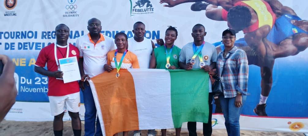 La Côte d’Ivoire a brillé au Tournoi Régional de la Zone Afrique de l’Ouest de lutte olympique et beach wrestling, disputé du 23 au 30 novembre 2025 dans la cité historique de Ouidah, au Bénin. Avec cinq médailles, dont trois d’or et deux d’argent, les Éléphants Lutteurs signent une performance remarquée qui les place parmi les meilleures nations de la compétition.